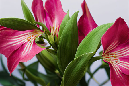 Alstroemeria pink flowers on white background, texture.
