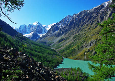 turquoise river, mountains and skies. Altay