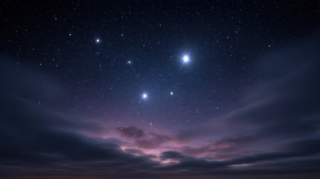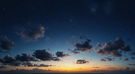 Immerse yourself in the stunning beauty of a starry night sky captured above soft clouds, showcasing twinkling stars amidst a tranquil atmosphere.