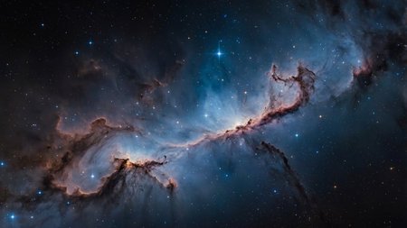 A stunning astronomical image showcasing a luminous nebula with swirling gases and nascent stars, evoking the vastness and beauty of the cosmos.