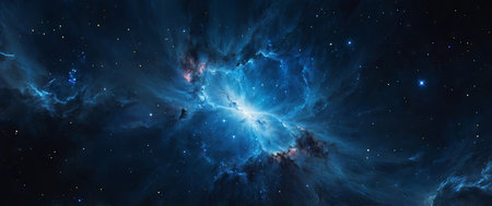 AI Generated. A vibrant blue nebula scattered with stars is the focal point of a breathtaking digital artwork, symbolizing the infinite beauty of outer space