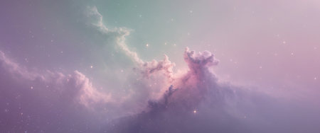 AI Generated. Dreamy Cosmic Nebula with Pastel Lavender Mint and Pink Tones Creating a Serene Celestial Atmosphere