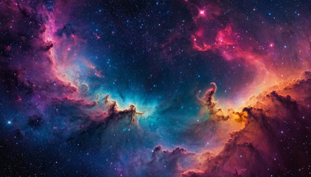 Colorful cosmic nebula in the universe shows swirling gases and bright stars in the night sky illuminating the vastness of space