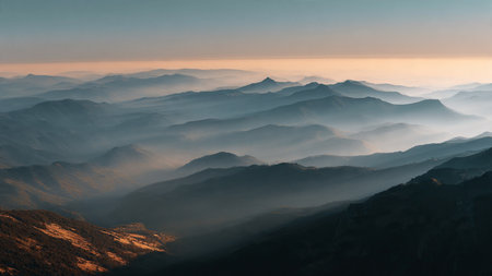 Foggy morning in the mountains. Landscape with fog in the mountains - AI generated