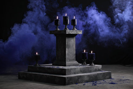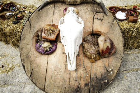 Altar for satanic rituals, witchcraft detail, occultism and sect
