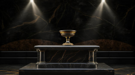Ornate golden chalice on a decorative cloth with smoke rising.