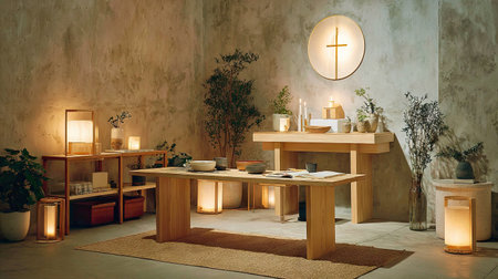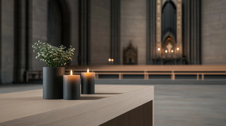 Easter Celebration in a Chapel with a Crucifix, Lit Candles, and Lilies Signifying Renewal and Worship