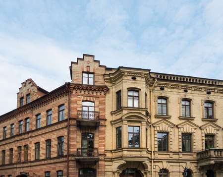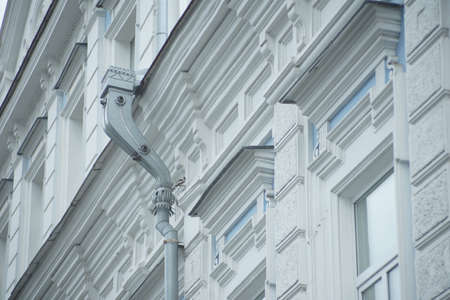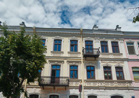 Beautiful Old Mansion With Stucco Molding Balcony in Saint-Petersburg, Russia. Stucco molding on the top part of a facade.