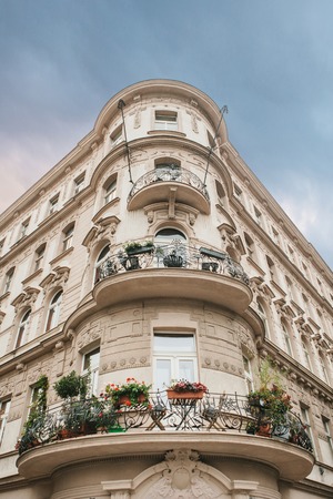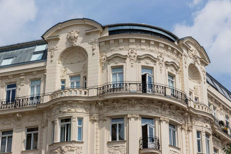 Classic facade of a residential building in the Austrian capital Vienna. Vintage style