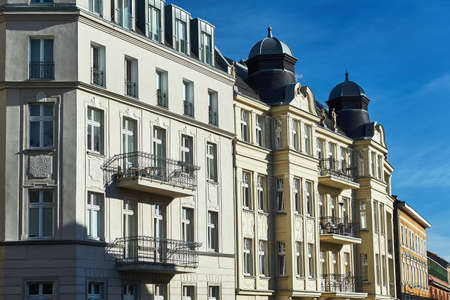 Newly renovated old tenement houses on Slaska Street in Szczecin, Poland.