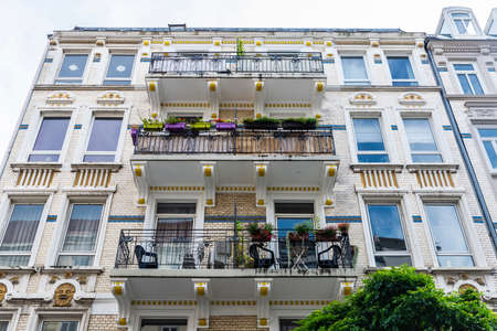 Facade of classic residential buildings in the neighborhood of Neustadt, in the center of Hamburg, Germany