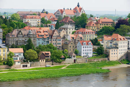 Meissen, Germany - May 22, 2010: View to the historic buildings along the banks of the Elbe river in Meissen, Germany.