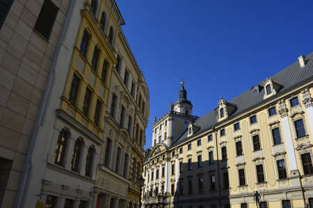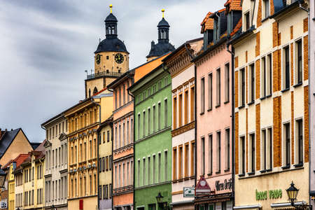 Wittenberg / Germany - February 26, 2017: Colorful facades of buildings in Lutherstadt Wittenberg, town in Saxony-Anhalt, Germany, where Martin Luther started the Protestant Reformation in 1517.