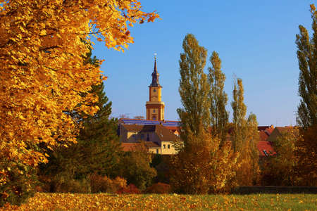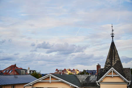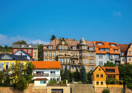 RIESA/GERMANY - July 23/2018: Photo of cityscape with house and blue sky