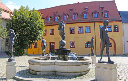 Halle (Saale), Germany-August 24, 2019: Life circle fountain on the cathedral square in the old town