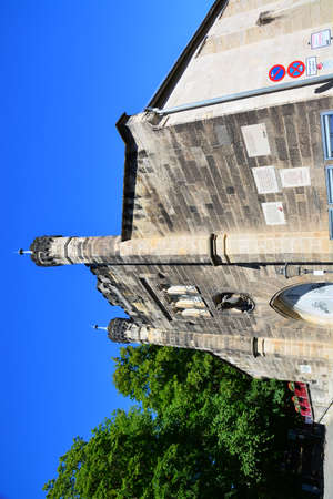 The New Town Hall in New Town of Prague in the Czech Republic, built in 1377–1398 in Gotic style was the place of defenestrations of Prague in 1419.