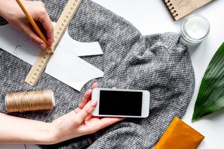 Close up of hands of tailor's which taking a photo