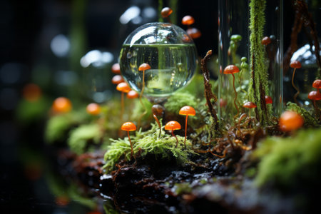 This captivating image features a vivid green tree encased within a glass jar, symbolizing nature's beauty and growth. The intricate details of the soil and moss add to the serene display, making it a perfect indoor d