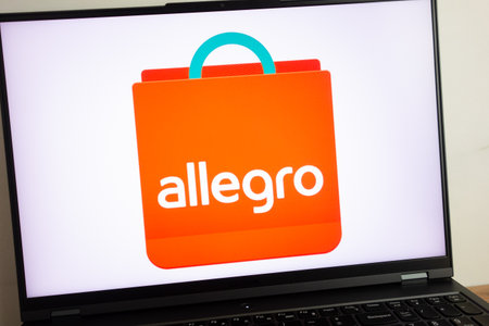 KONSKIE, POLAND - July 19, 2022: Allegro.pl ecommerce company logo displayed on laptop computer screen