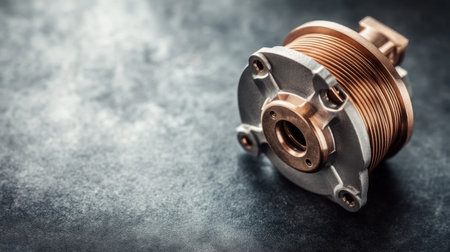 This image showcases a metallic coil component with a detailed close-up, perfect for illustrating industrial applications, engineering projects, and machinery details.