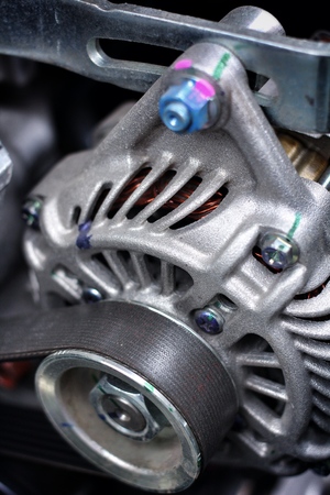 Car Alternator or Dynamo Closeup - For Converting Mechanical Energy to Electrical Energy Inside a Car.
