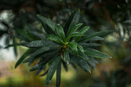 Green leaves natural background. Pittosporum torbira plant