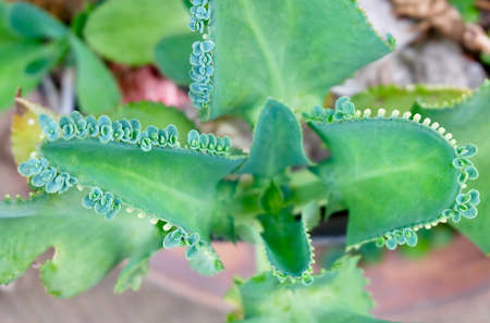 Bryophyllum Daigremontianum, Devil’s Backbone, Mother of Thousands, Alligator Plant or Mexican Hat Plant Decoration in The Beautiful Garden. A Succulent Native to Madagascar.