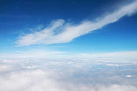 Above view from plane on blue sky and clouds
