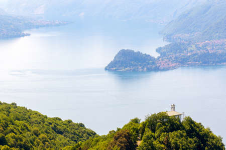 Como lake coasts in hot summer morning, Lombardy, Italy.