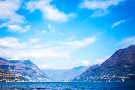 Beautiful italian landscape - blue sky, mountains and Como Lake