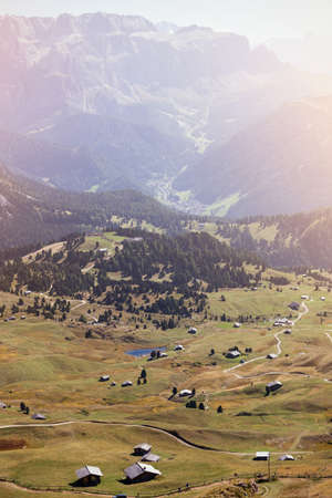 mountains Dolomites and views of the valley, Italy. Seceda