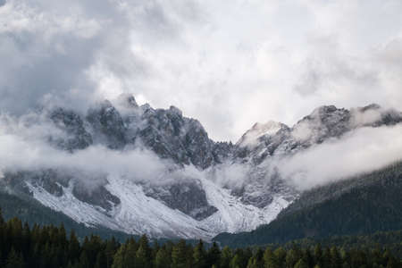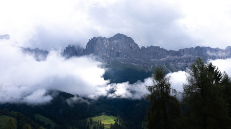Misty mountain scene in Dolomites mountain Italy, Europe