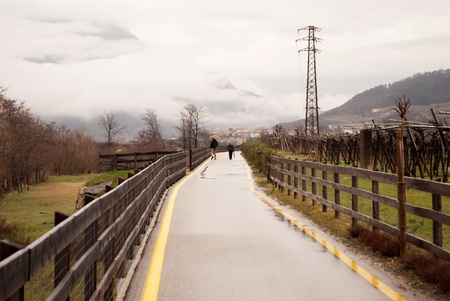 Landscape with vineyards and apple orchards,Caldaro region,Italy
