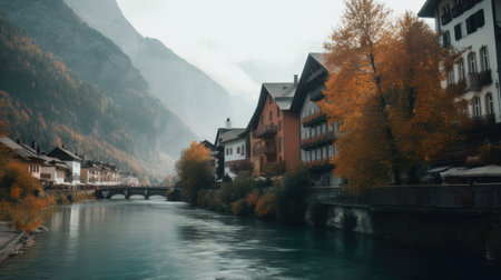 Beautiful old town surrounded by mountains view. Generative AI