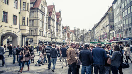 Munich, Germany - April 2014: People walking on the streets of Munich city center, Munchen city centre old town