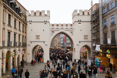 Munich, Germany - January 02 2016: Tourists walking nearby Karlsgate at winter time