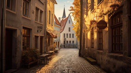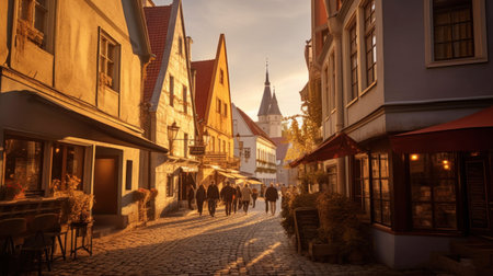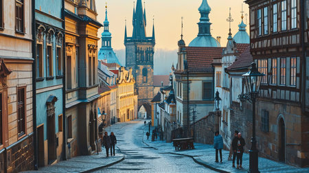 A charming scene from a historic European city capturing the essence of cobblestone streets classic architecture and vibrant street life The lighting should be warm and inviting ideally set during the golden hour to enhance the romantic and timeless feel of the cityscape