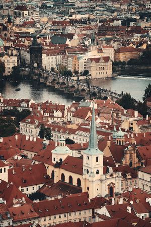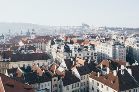 Prague skyline rooftop view with historical buildings in Czech Republic.