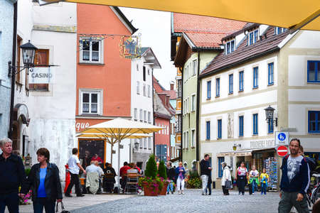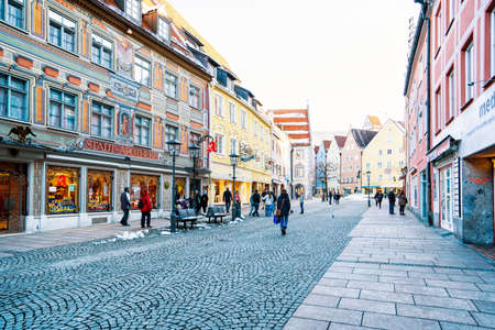 FUSSEN, GERMANY - 6 MARCH 2016: City street with shops in wintertime