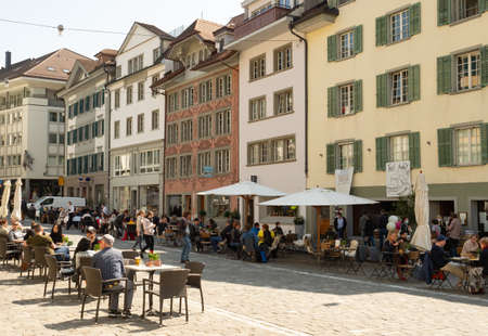 Lucerne, Switzerland - April 21st 2021: High frequence on restaurant terraces