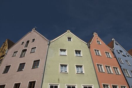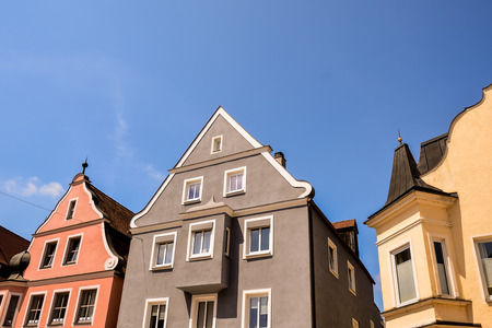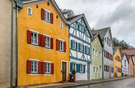 Füssen, Germany - July 20, 2019; Colorful historic houses in Füssen a touristic and historic town on the romantic road