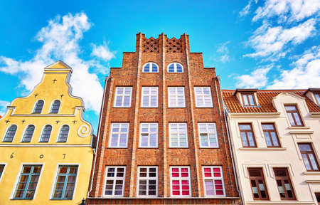 Beautiful colorful old gabled house facades in the old town of Wismar.