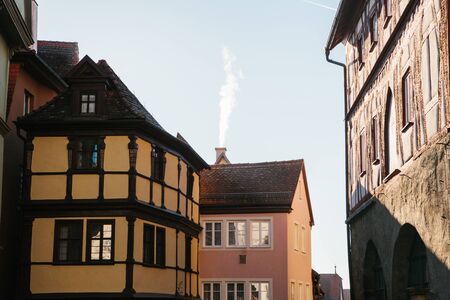 Old houses in Rothenburg ob der Tauber, picturesque medieval city in Germany, famous UNESCO world culture heritage site, popular travel destination