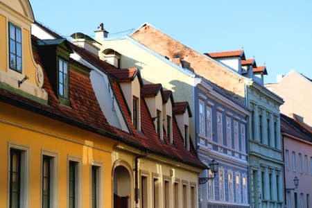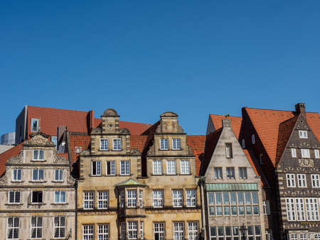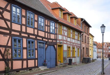 Facade of the typical crow-stepped gabled town house in Lunenburg, Germany