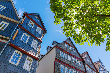 Gothic half-timbered houses - picturesque view in the Schwabisch Hall city Old town, Germany