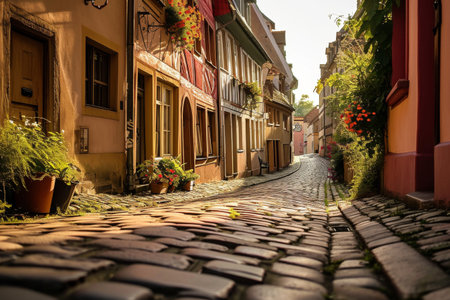 Cobblestone streets of an old European town, Historical cobblestone streets in an old European town Ai generated