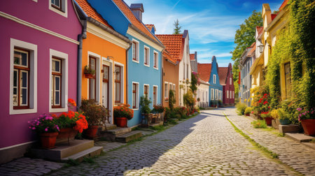 Charming Cobblestone Street: A Serene Pathway Amongst Historic Residential Masonry Homes