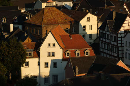 a view of historic town in the evening light. Bad Muenstereifel, Germany
