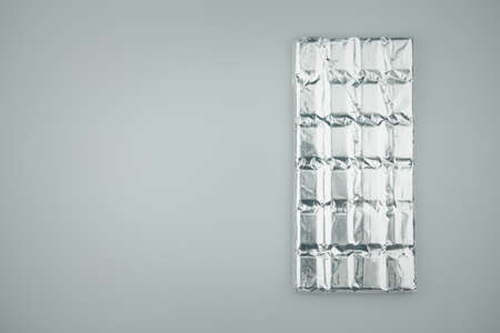 Chocolate bar in aluminum foil. Minimal concept above