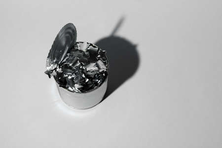 Tin can for food on gray background